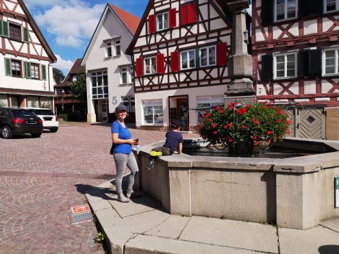 Während die Wanderinnen und Wanderer der großen Tour noch unterwegs waren, unter anderem im wirklich sehenswerten naturgeschützten Schaichtal, hatten die Teilnehmerinnen und Teilnehmer der kleinen Tour Zeit um mit dem Bus nach Waldenbuch zu fahren. Hier bot sich die Gelegenheit die Altstadt zu besuchen oder es sich im Straßencafé bei einem Eis, Eiskaffee oder Kaffee gut gehen zu lassen.