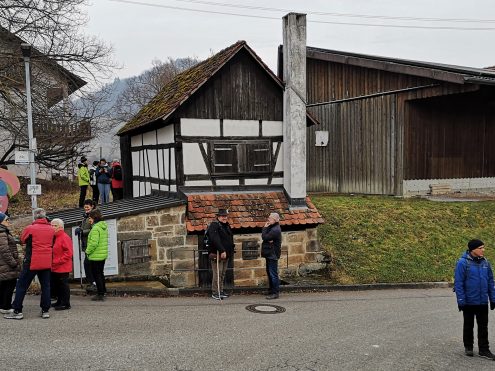 Der Einladung zur Februar-Tour sind 46 gut gelaunte Wanderinnen und Wanderer gefolgt. Das hat die Wanderführerinnen riesig gefreut! Nach einer kurzen Begrüßung ging es in Fahrgemeinschaften  direkt zur Kelter nach Pfedelbach – Heuholz.